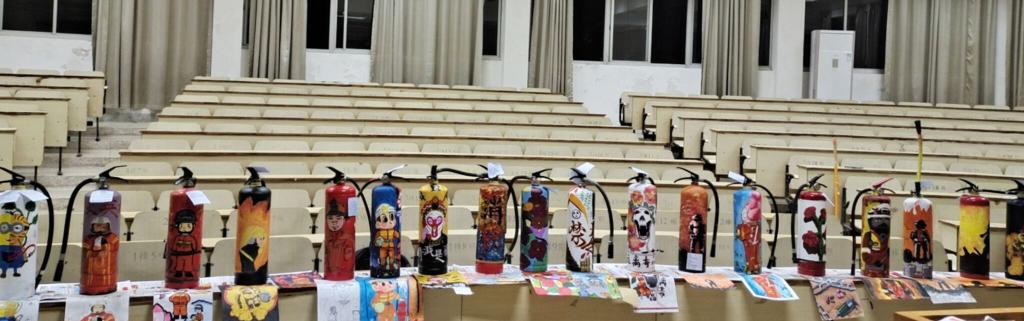 这是我校举办的第五届“灭火器涂鸦大赛”,在报废灭火器上涂鸦DIY,不仅使资源再利用,变废为宝,为报废灭火器提供了一个新出路,而且能吸引眼球,让广大学生自主参与活动,增加对消防安全知识的关注,寓教于乐。