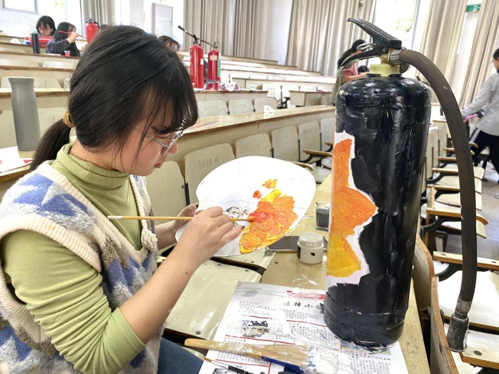 “通过参加这个活动,我对灭火器有了更加深入的认识,通过我的努力让消防安全知识被更多同学熟知,我感觉很兴奋”,刚完成作品绘制的侯同学激动地说。