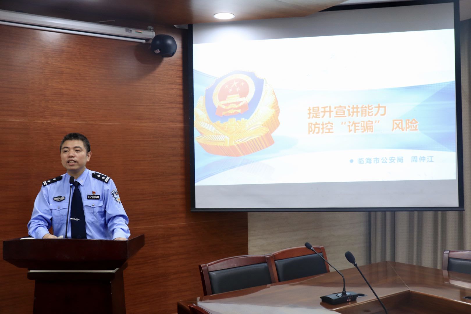 5月23日,在台州学院临海校区行政楼第一会议室举行了“诈骗终结者”宣讲团第二次全体会议。本次会议由临海市公安局宣教科副科长杨威涛主持,临海市公安局宣教科科长周仲江、大洋派出所教导员陈锋、古城派出所教导员詹加跃、邵家渡派出所副所长彭毅、江南派出所民警刘利利、临海市公安局宣教科民警王翔以及“诈骗终结者”宣讲团全体成员共同参加。