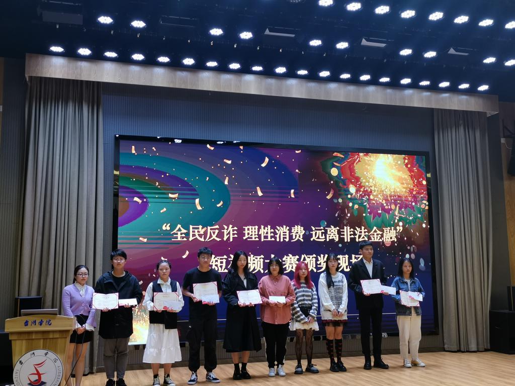 以镜头传播反诈防骗知识,用通俗易懂的语言提高大学生防范意识。10月29日,我校携手中国人民银行台州市中心支行、台州市金融办、浙商银行台州分行联合举办的“全民反诈 理性消费 远离非法金融”短视频作品征集大赛颁奖典礼在大学生活动中心顺利举行。
