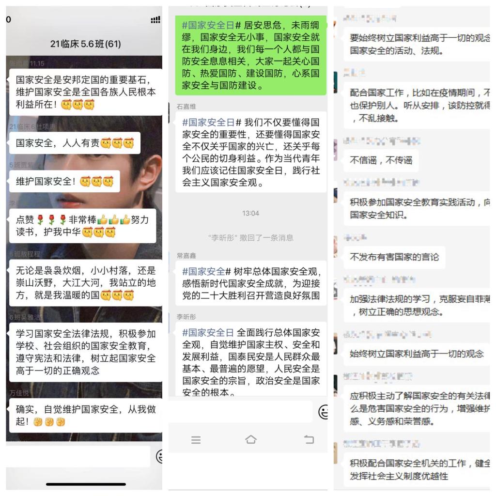 活动期间,我校师生以学院、部门或班级为单位,错峰观看学习“千万师生同上一堂国家安全教育课”为主题的公开课,真正了解国家安全的深刻内涵;观看反邪警示教育宣传片,阅读宣传海报,学会抵制非法宗教向校园渗透;利用课余时间自学“国开大讲堂•国家安全教育公开课”;以班级为单位,积极探讨作为大学生如何维护国家安全,彰显当代大学生的责任与担当。同时,学校各个新媒体平台、电子显示屏滚动播放国家安全宣传教育图文、视频,营造了浓厚的宣传氛围,让国家安全知识更深入人心。