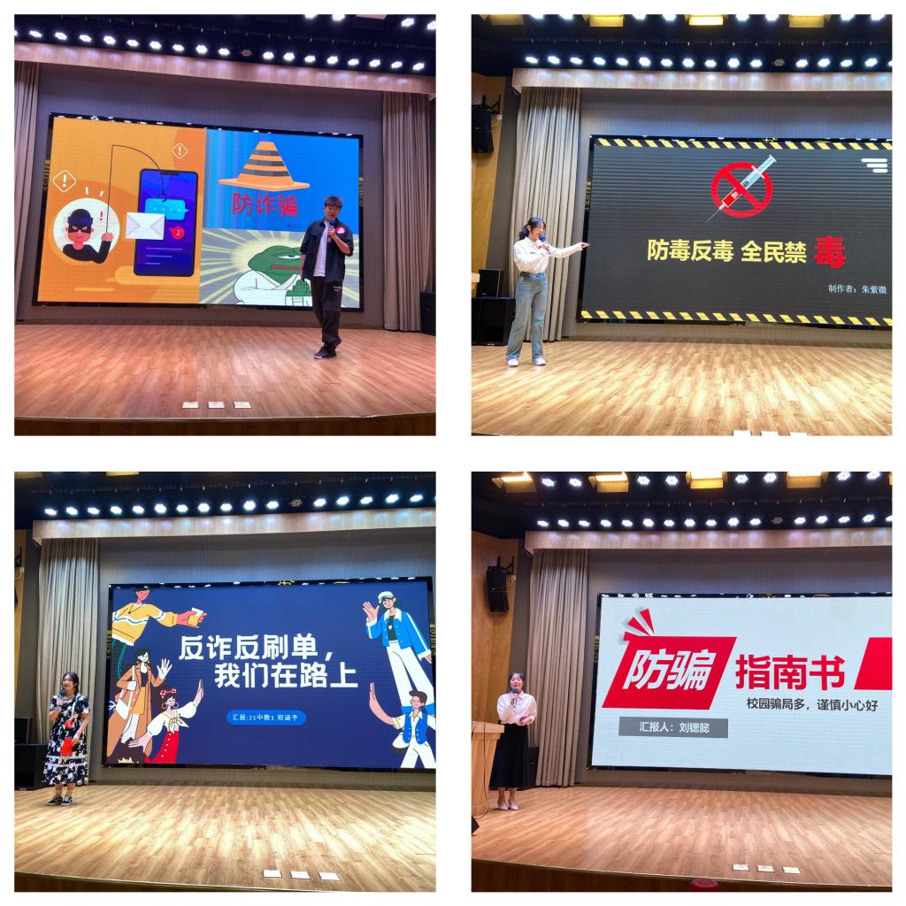 赛场上,选手们用大方美观的PPT,慷慨激昂的语言以及饱满的热情给评委和观众留下了深刻印象。他们凭借出色的演讲能力为同学们普及交通安全知识,传播禁毒知识,深入女性自我保护话题,同时也讲述了保卫国家安全以及文化安全的相关内容。比赛间隙进行了“逛三园”小游戏,邀请现场观众互动,每人轮流说出一种毒品名称,大家热情高涨,积极参与。最终,来自23材料成型与控制工程的张烨和21体育教育的华欣荣获一等奖。大赛也在嘉宾刘秋兰、陈子萱和李勇庆的悦耳歌声中圆满落幕。