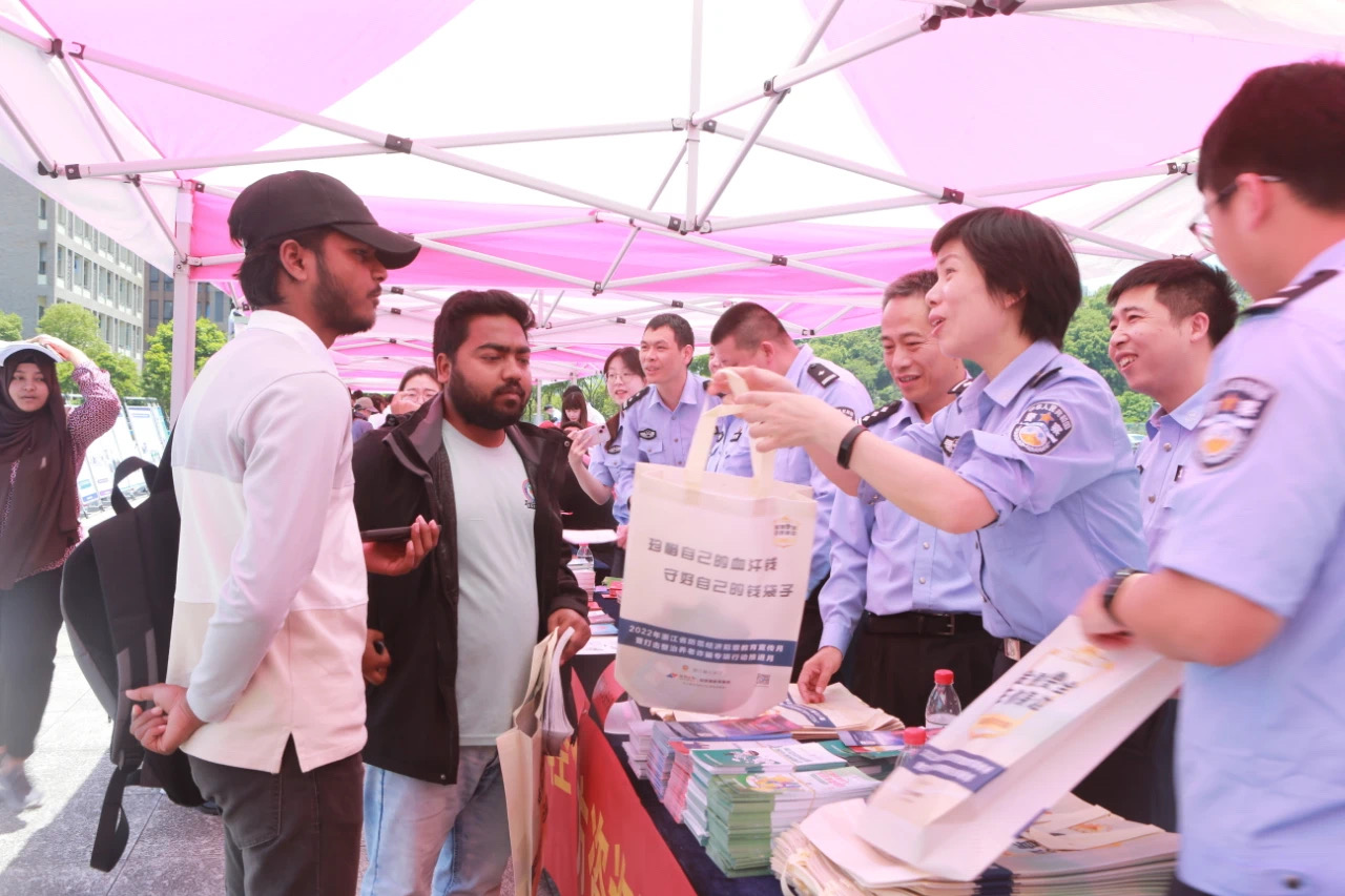 今年5月15日是第十五个“全国公安机关打击和防范经济犯罪宣传日”。当天上午,我校联合台州市公安局、市税务局、人民银行、金融监管局、椒江区公安分局等单位,举办了“与民同心,为您守护”打击和防范经济犯罪广场宣传活动,向广大师生宣传防范经济犯罪,普及金融知识。