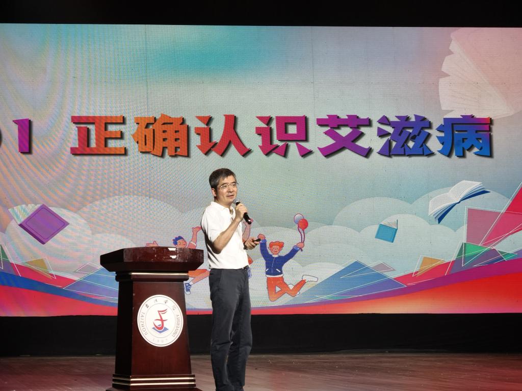 在健康教育讲座中,台州市疾控中心党委书记林海江用通俗易懂的语言,向同学们普及了防范艾滋病的相关知识,并提醒同学们做好预防措施,保持健康的生活方式。