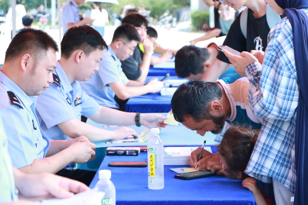 会场外,台州市公安局举办了一场别开生面的“安全集市”,集市现场设置网络安全、反诈识骗、反恐反邪、禁毒安全、交通安全等主题摊位,每个摊位上都设有与安全相关的闯关游戏。学生顺利闯关就有机会获得小熊玩偶、充电宝、雨伞等公安文创小礼品。活动现场气氛热烈,吸引了众多学生围观参与。