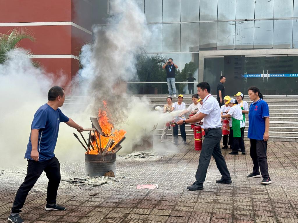 为切实增强后勤员工的消防安全意识,提升应对火灾的应急处置能力。近日,校安全保卫部特邀临海大田消防队与安科技术人员,先后在椒江、临海两校区组织开展消防演练活动。