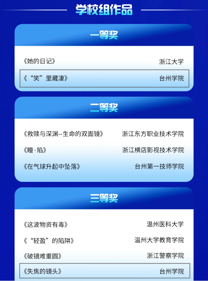 近日,由浙江省禁毒委员会办公室、省教育厅、省广播电视局等部门联合主办的浙江省禁毒微视频大赛评选结果揭晓。台州学院报送的作品成绩斐然,其中由马克思主义学院选送的《“笑”里藏凄》,在全省众多参赛作品中脱颖而出,荣获大赛一等奖。同时,由人文学院报送的《失焦的镜头》也表现不俗,荣获大赛三等奖,展现了学校在禁毒宣传教育领域的多元探索与整体实力。