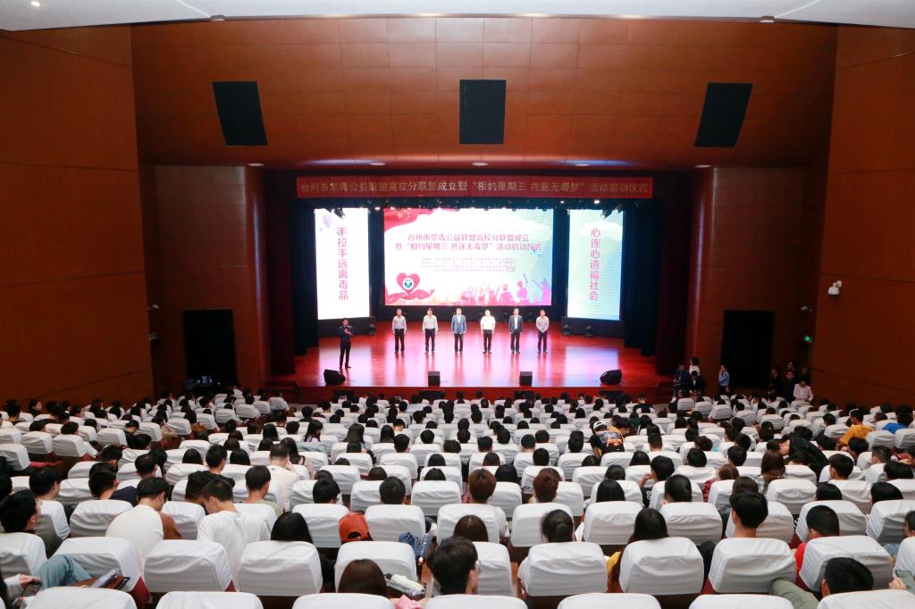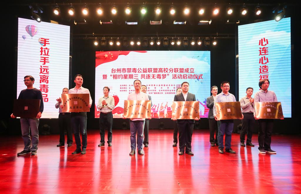 启动仪式上,全体高校学生集体站立,高声宣读禁毒倡议书,发出誓与毒品斗争到底的“地表最强音”。与会领导分别向“台州市禁毒公益联盟高校分联盟成员单位”授牌、授旗。最后,由台州市委常委、常务副市长蔡永波宣布,台州市禁毒公益联盟高校分联盟正式成立,“相约星期三 共逐无毒梦”活动正式启动。