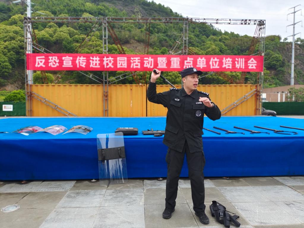 425日下午,由葭沚派出所、巡特警大队联合主办,校保卫处承办的“反恐宣传进校园活动暨重点单位培训会”在台州学院椒江校区青年广场举行。保卫处处长夏延峰,葭沚派出所副所长徐刚,巡特警大队副大队长刘博文现场督导;葭沚派出所民警、巡特警大队队员、椒江区防范恐怖袭击重点目标单位人员及我校椒江校区全体保安队员现场观摩学习。