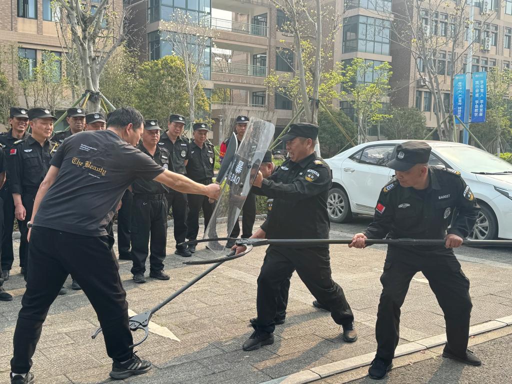 培训中两位教官重点讲解了防爆毯、防刺服、防刺手套、齐眉棍、捕捉网、盾牌、抓捕器等器械的使用,以及队形队列训练。随后一场预设的紧急情况在校园内悄然拉开序幕。一名“暴恐歹徒”,手持凶器企图闯入校园,保安队员临危不乱,利用防暴装备,合力将歹徒制服。之后保安队员三人一组,轮番实战。本次防暴演练严格贯彻"实战引领、训战结合"原则,通过全要素、全流程的实兵对抗,全面检验校园安保体系的应急响应能力。