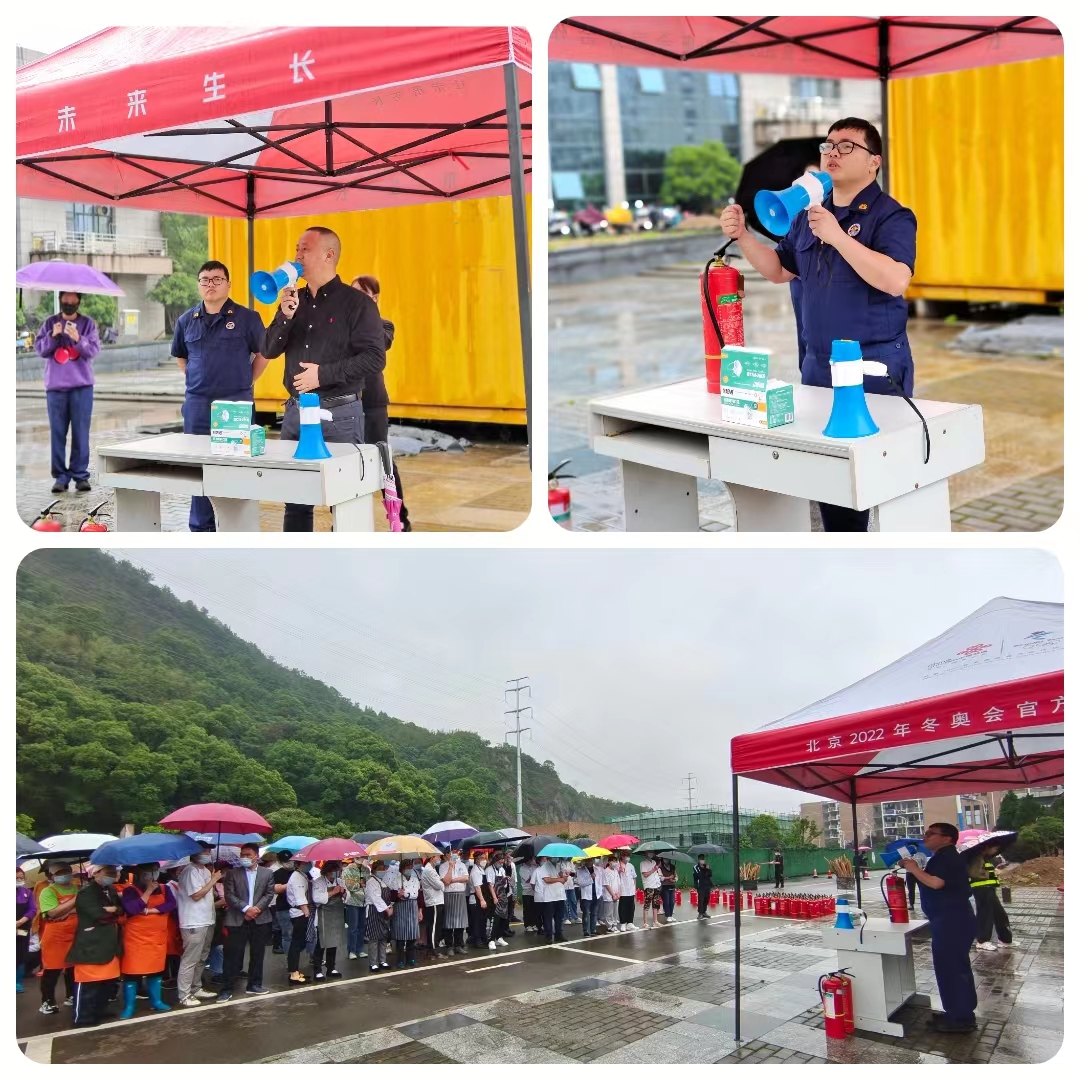 演练现场,校保卫处处长杨启富、副处长李文兵分别担任总指挥。临海、椒江两地消防大队宣讲员应邀担任主讲,为两校区图书馆、信息技术中心、实验室、食堂、宿管、商铺等重点部位工作人员,学生代表、保安队员等讲解了初期火灾的有关知识及应对方法,详细解说了各种灭火器材的适用场合及操作要领,重点演示了灭火毯和灭火器的使用步骤。演练中,各参训人员面对熊熊大火,临危不惧,在消防战士的专业指导下,按照“提、 拔、握、压”的操作步骤,进行了标准有序的灭火实践。全体参训人员态度认真,团结协作,密切配合,演练达到了预期效果,取得了圆满成功。