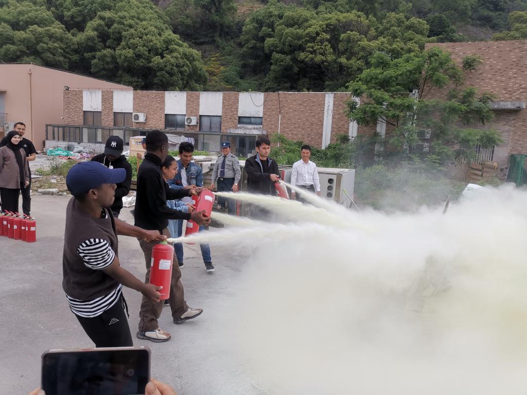 临海、椒江两地消防大队宣讲员应邀担任培训教官。教官为参演人员详细讲解了初起火灾的有关常识,以及各种灭火器材的适用场景和使用方式,重点介绍了灭火毯和干粉灭火器的操作要领 ,还现场演示了消防水带的连接方法。