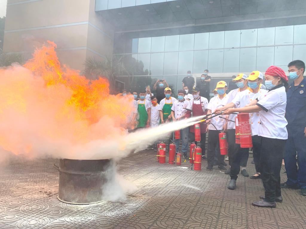 演练现场,校保卫处处长杨启富、副处长李文兵分别担任总指挥。临海、椒江两地消防大队宣讲员应邀担任主讲,为两校区图书馆、信息技术中心、实验室、食堂、宿管、商铺等重点部位工作人员,学生代表、保安队员等讲解了初期火灾的有关知识及应对方法,详细解说了各种灭火器材的适用场合及操作要领,重点演示了灭火毯和灭火器的使用步骤。演练中,各参训人员面对熊熊大火,临危不惧,在消防战士的专业指导下,按照“提、 拔、握、压”的操作步骤,进行了标准有序的灭火实践。全体参训人员态度认真,团结协作,密切配合,演练达到了预期效果,取得了圆满成功。