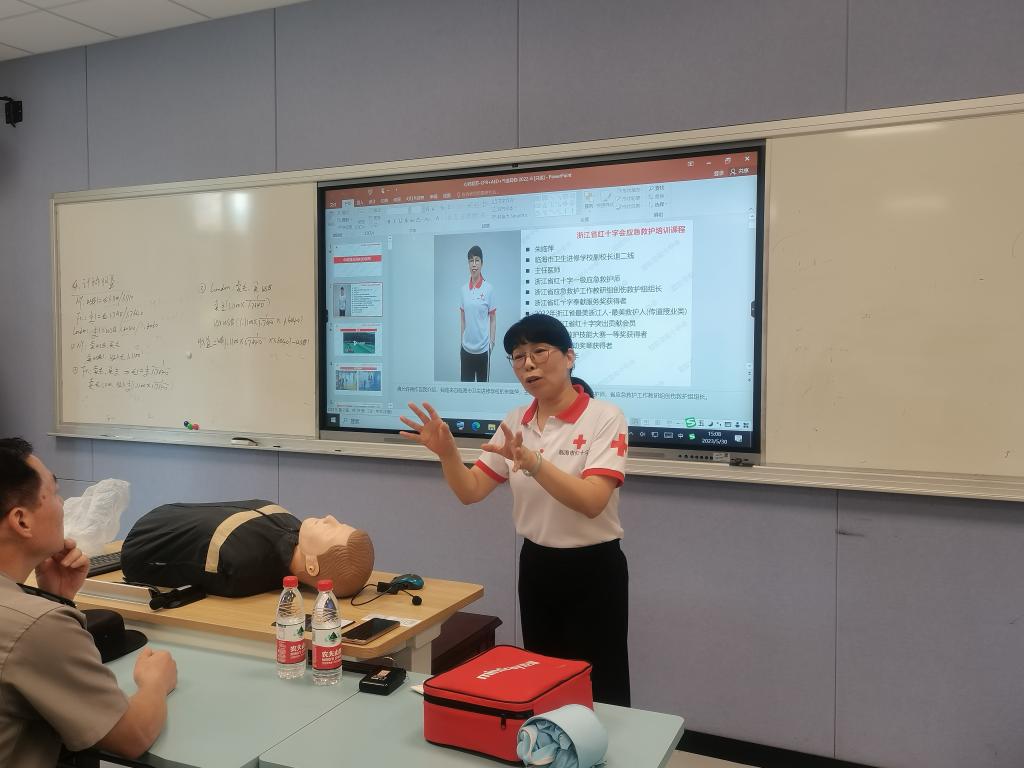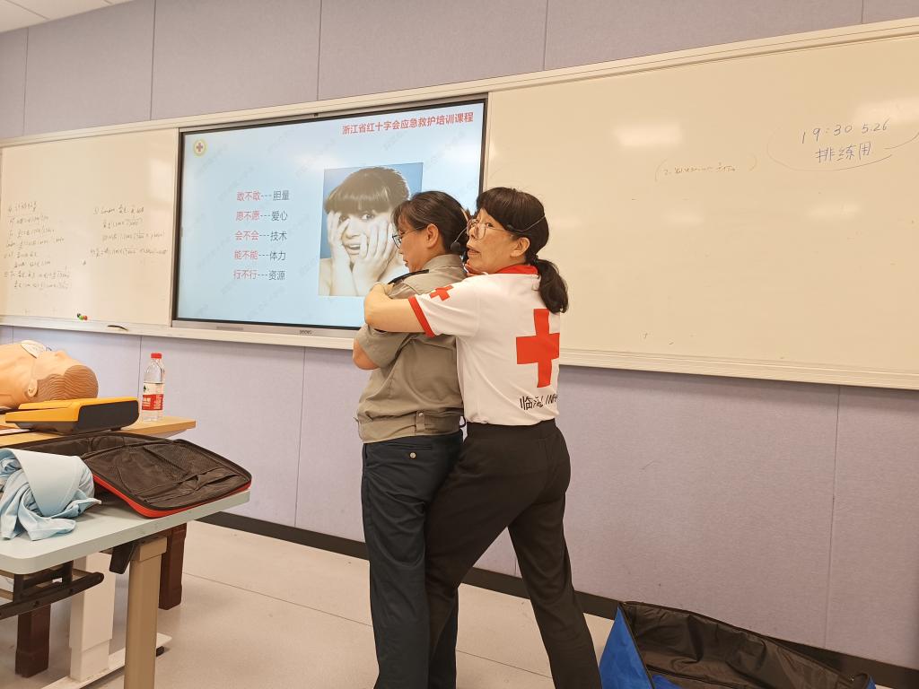 为进一步推进“平安校园”建设,提升我校安保人员的专业素质和业务能力,5月30日,临海校区开展了安保人员急救理论知识和实操培训活动。本次活动特邀临海市卫生进修学校副校长朱临萍担任培训师,临海校区全体保卫干部、保安队员共30余人参加了活动。