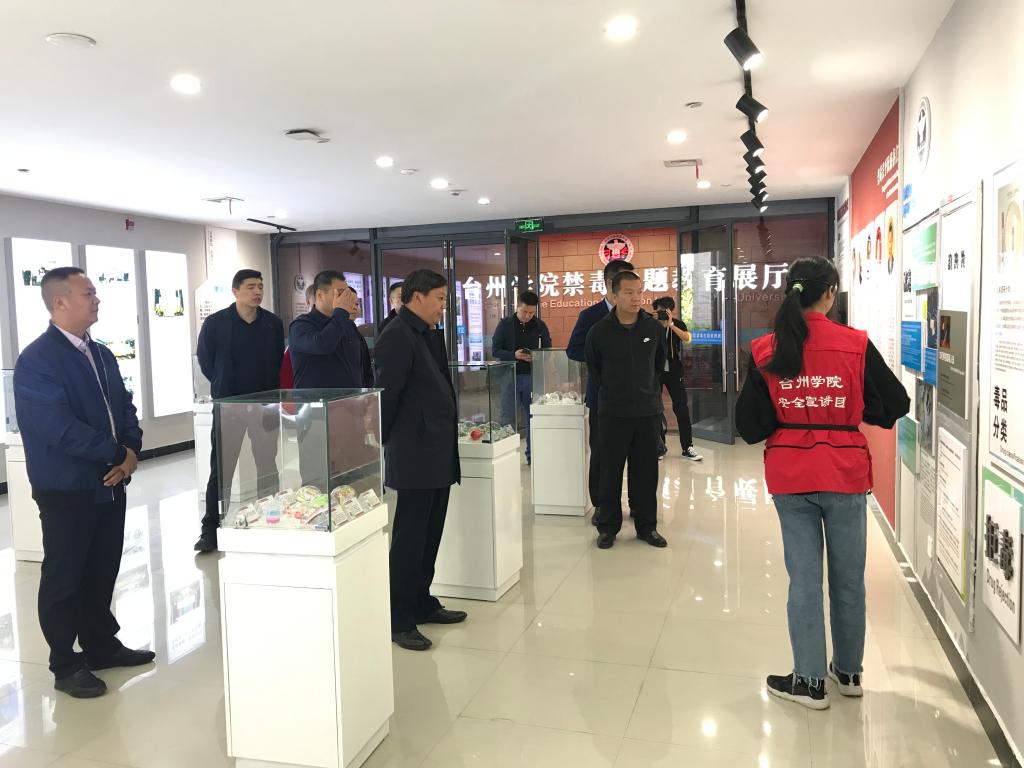 10月23日,温州瓯海公安分局副局长蔡国华,温州大学保卫处处长孙安梭,瓯海区公安分局禁毒大队长金胜义等一行5人来校考察交流学校禁毒教育工作。校党委副书记金先龙陪同考察并出席交流会,保卫处处长杨启富作专题汇报。椒江区公安分局副局长王群力,椒江区禁毒大队副大队长张杰、王坚等参加考察交流活动。
