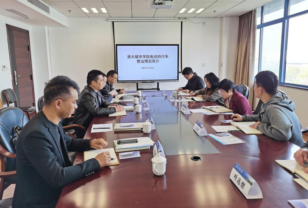 浙江师范大学、浙江理工大学、杭州电子科技大学和浙大城市学院保卫处负责人等分别热情接待了考察组,重点围绕校园电动车管理模式、专项整治及其工作成效进行座谈交流。浙江师范大学通过“摸底排查、深入宣传、警校联动、部门合力”等工作举措,初步达成“校园电动自行车总量控制,停放有序”的良好局面;浙江理工大学形成了“优布局建机制、线上数字化管理、线下网格化管理,警校协作治理”的校园电动自行车管理体系;杭州电子科技大学严格落实《杭州电子科技大学电动自行车管理办法》、《杭州电子科技大学道路交道安全管理规定》等相关规定,大量引入共享单车,极大地改善了校园交通秩序;浙大城市学院通过“前期摸底排查、充分酝酿准备、强化宣传引导、加强监督检查”,严格限制新生购置电动自行车,逐步实现共享自行车逐步取代电动自行车的预期目标。省内兄弟院校园电动车的管理模式与具体做法值得学习与借鉴。