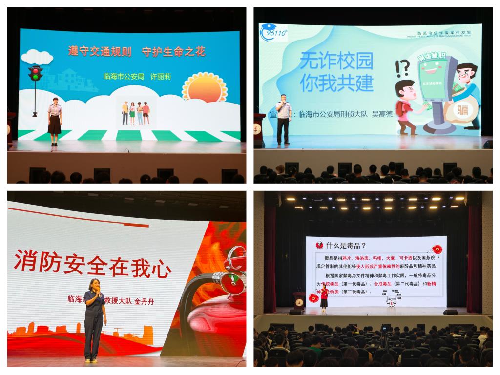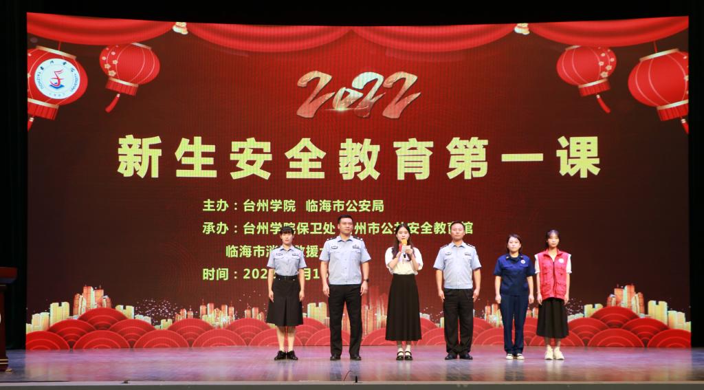 9月15日,由台州学院、临海市公安局、临海市疾控中心联合主办的“2022级新生健康安全教育第一课”在临海校区会堂顺利举行。台州市人民警察培训学校副校长、台州市公共安全教育馆副馆长李长青出席活动并致辞;临海市疾病预防控制中心副主任叶小红,临海市公安局平安宣讲团民警吴高德、许丽莉,临海市消防救援大队宣教员金丹丹,学生校卫队金璐、蒋颖萱等担任主讲,为我校2022级新生普及健康、安全知识。