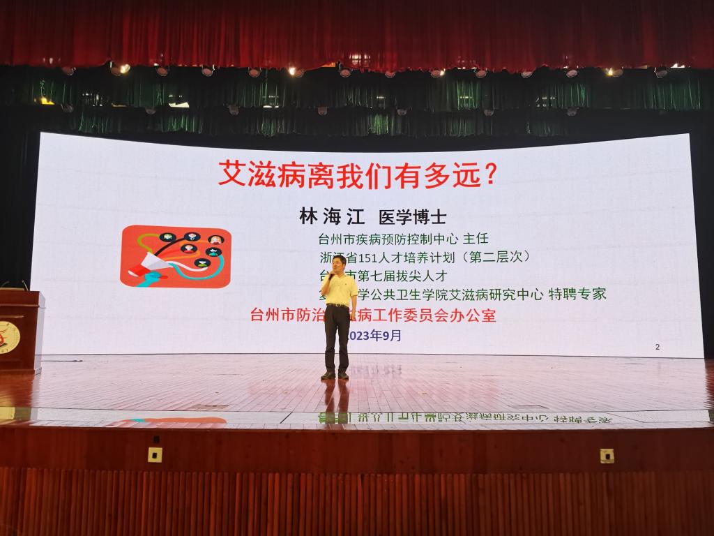 在健康教育课上,台州市疾病预防控制中心主任林海江博士与临海市疾控中心主任叶小红为大家普及了艾滋病防控等健康教育相关知识,让大家了解到什么是艾滋病、艾滋病的传播途径、新型毒品与艾滋病的关系,并从一些鲜明事例以及具体数据中得知艾滋病就在我们身边,大学生应学习如何预防艾滋病,养成健康的生活方式及良好的卫生习惯,身体出现异常及时就医等等。