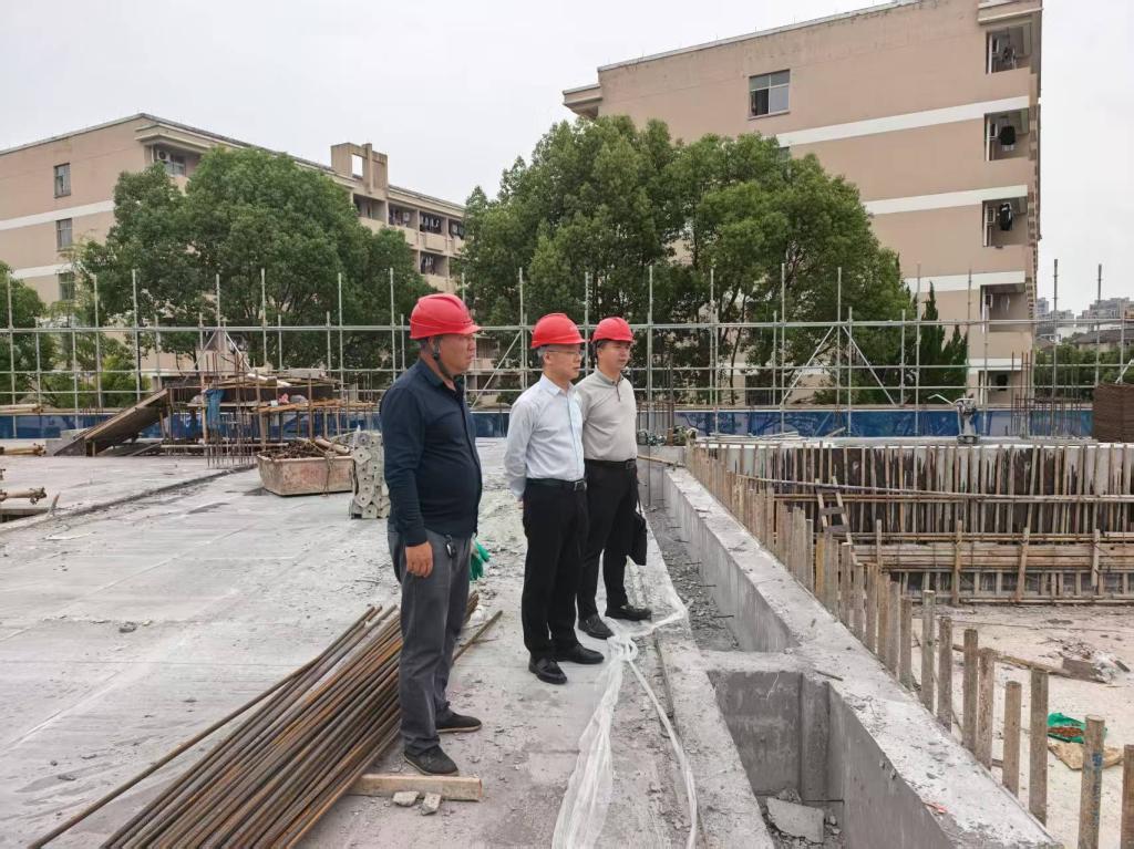 在临海校区游泳馆建设场地,杨健国听取施工方负责人关于该项目进展情况汇报,他强调,要强化施工安全,严格落实各项安全措施,杜绝安全事故的发生;要保证施工质量,从严从细做好施工监督管理,重点把关隐蔽施工环节,保质保量完成建设;要把握施工进度,针对当前梅雨季节等因素,科学合理安排施工,确保游泳馆建设如期竣工。