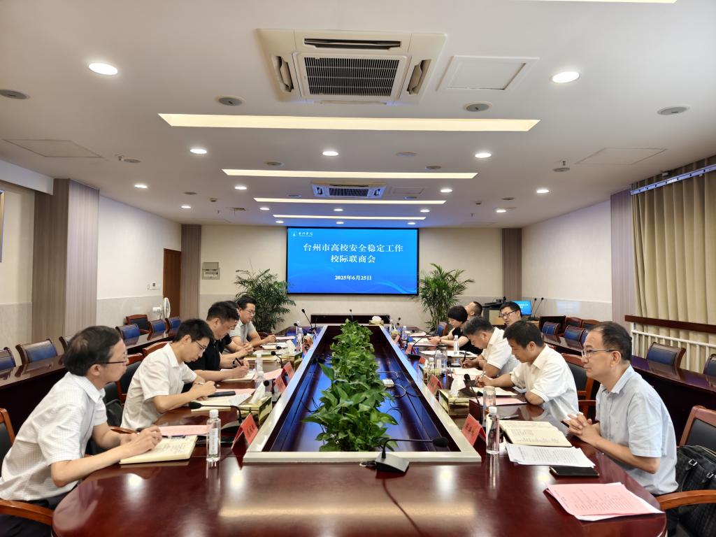 6月25日上午,台州市高校安全稳定工作校际联商会在我校椒江校区第一会议室召开。会议由我校作为总召集方,校党委副书记项凤日主持。市委教育工委委员、市教育局党组成员、副局长陈海鸣,市教育局组织处处长梁云卿、高等职成教处处长牟镜伊、安体处处长朱德,台州职业技术学院、台州科技职业学院、浙江汽车职业技术学院分管安全工作校领导、安全保卫部负责人和相关保卫干部参会。