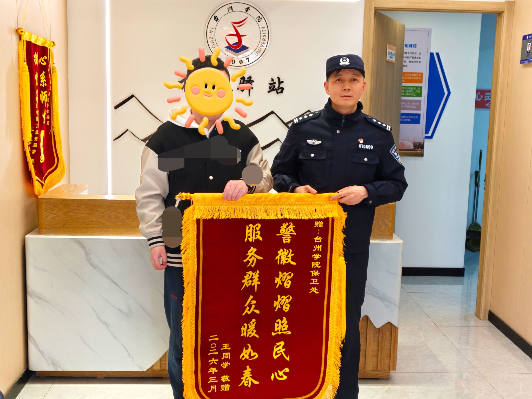 3月9日,一面印着“警徽熠熠照民心 服务群众暖如春”的锦旗被专程送至台州学院校警驿站。这面锦旗不仅是一名学生对校警驿站的真挚认可,背后更藏着一段警校联动、守护学生财产安全的暖心故事。