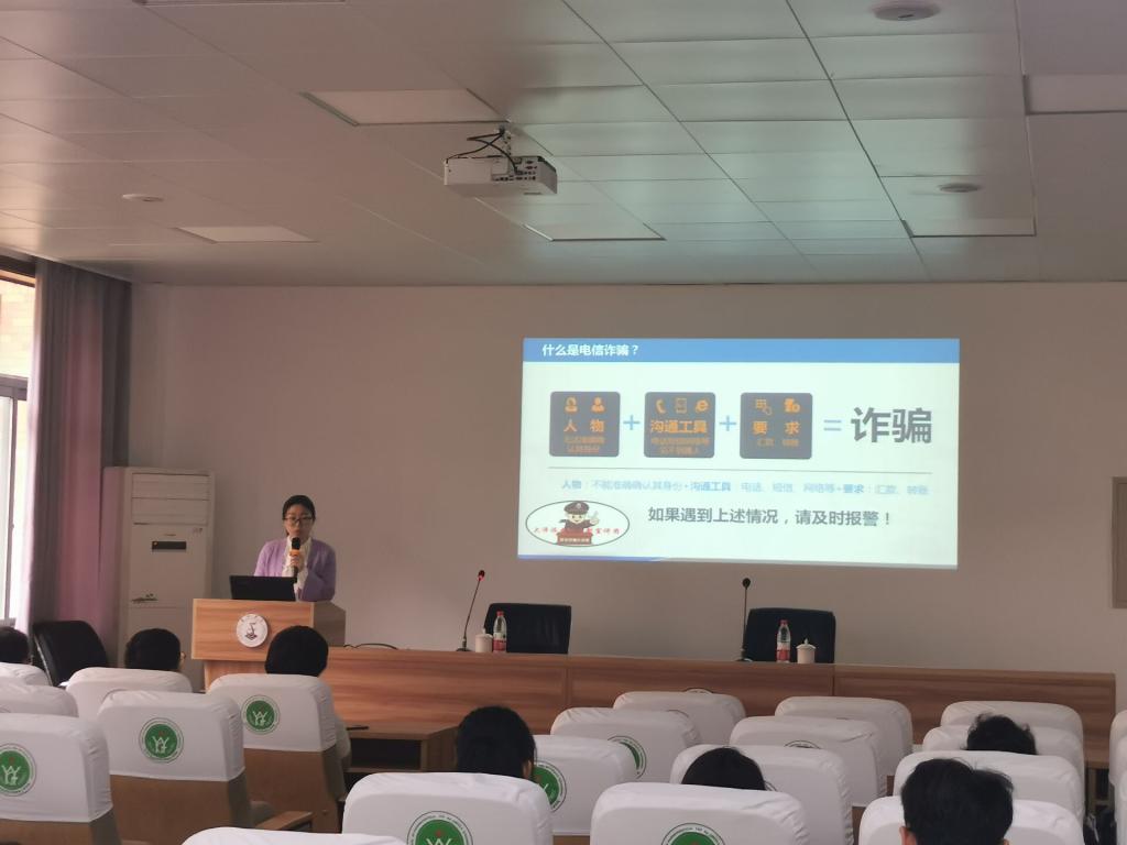 为进一步提高学生安全防范意识,深化平安校园建设,4月28日下午,校保卫处“相约星期三”平安微课活动走进医化学院。台州市禁毒办副主任夏莹应邀作防毒禁毒主题讲座;校保卫处叶挺婷主持活动,并结合具体案例作防范电信网络诈骗宣讲;医化学院大一、大二学生代表参加活动。