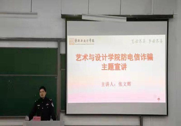 10月26日晚,艺术与设计学院举行两场防电信诈骗主题宣讲会,旨在提高同学们的防诈骗意识。来自葭沚派出所、有着多年防诈工作经验的张文辉、洪竹生警官应邀担任主讲,学院党委副书记林军辉主持宣讲会,学院19级、20级、21级学生参加。