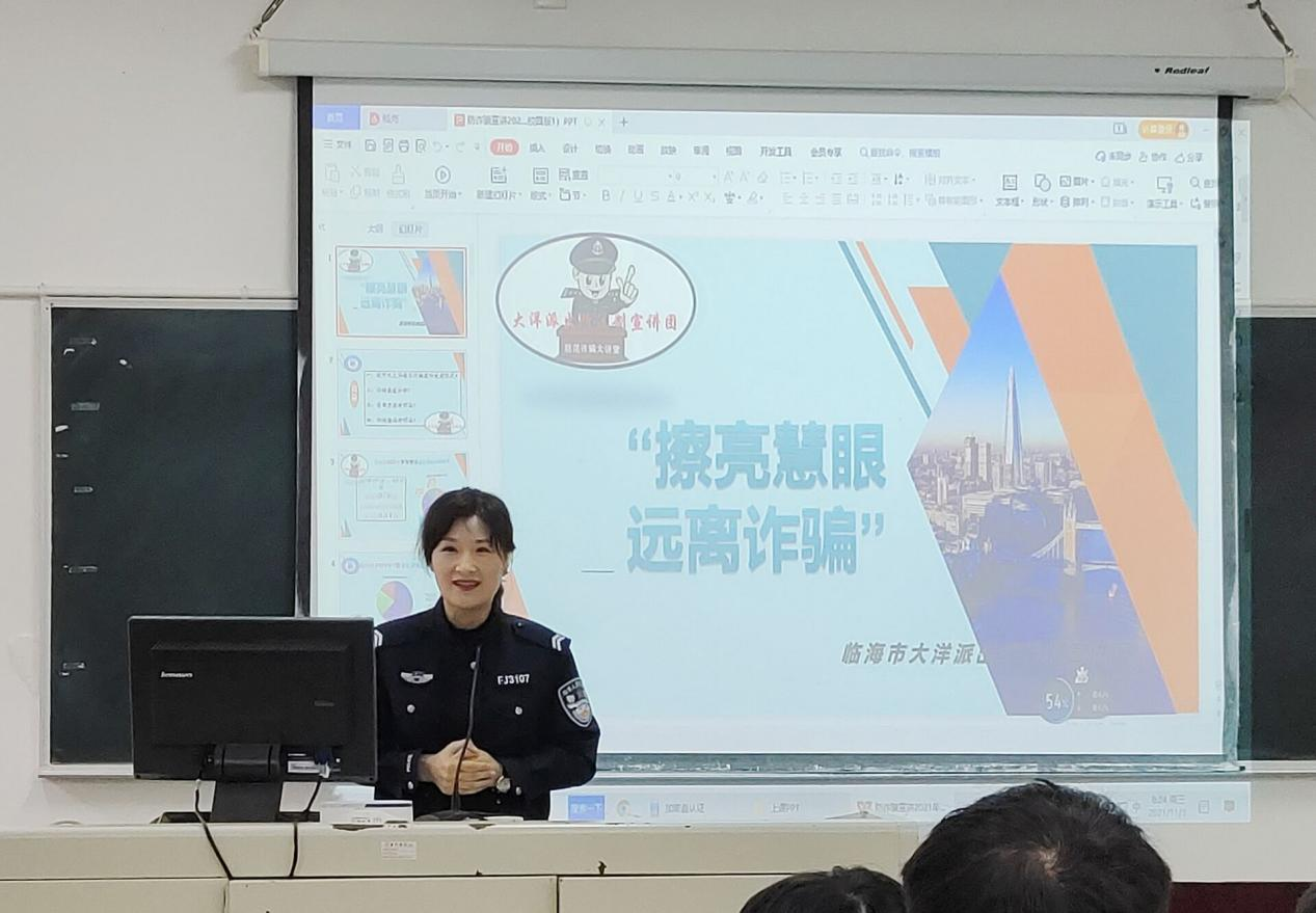 为进一步提升学生防诈骗意识,建设平安和谐校园,11月3日,校保卫处主办的“相约星期三”平安微课活动走进电信学院,举行“擦亮慧眼,远离诈骗”防诈骗安全教育专题讲座;临海市公安局大洋派出所法制宣讲团成员徐警官应邀担任主讲,辅导员沈迪及学院百余名学生到场学习。