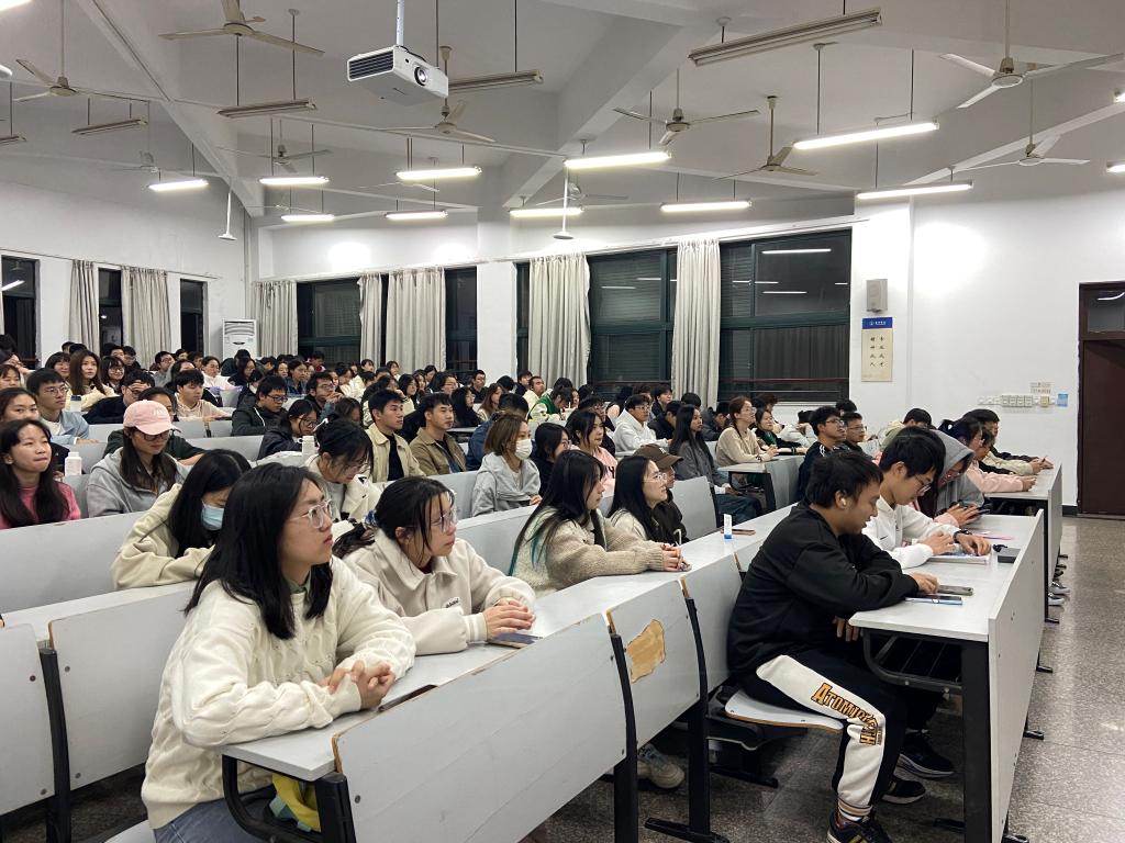 11月15日晚,由台州市公安局椒江分局主办的暖冬反诈直播活动在抖音上进行。葭沚派出所民警章馨玥、海门派出所民警颜拓担任本次活动主播,我校椒江校区250余名学生代表集中观看直播内容。