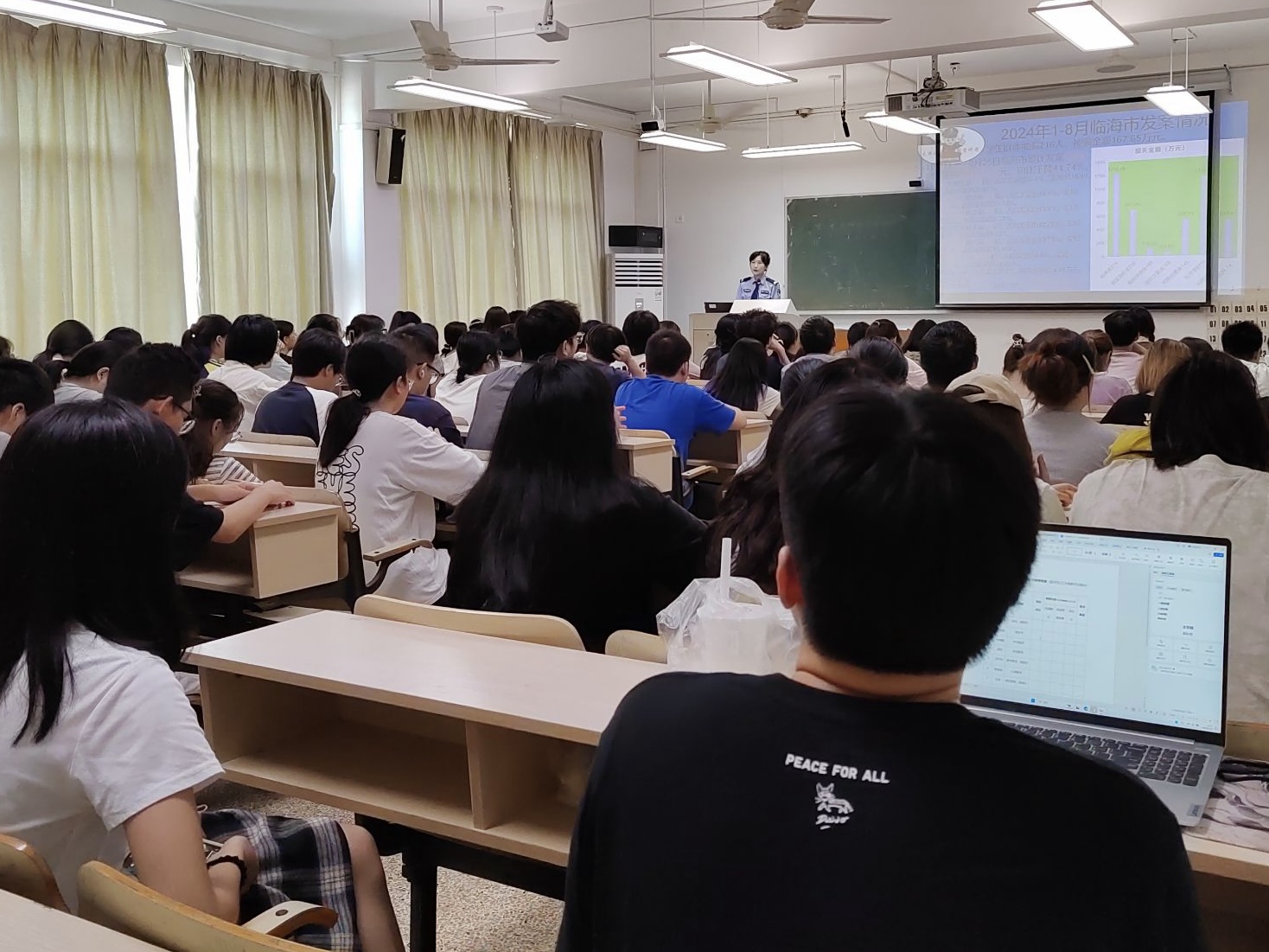 9月26日,校安全保卫部联合临海市公安局大洋派出所开展“相约星期三”平安微课系列活动之反诈宣讲活动。大洋派出所法治宣讲员徐扬益,应邀担任主讲,临海校区近200名同学到场参与。
