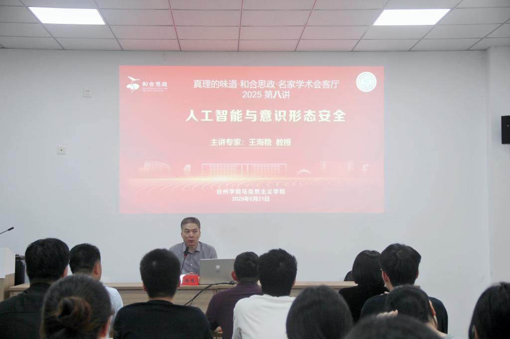 5月21日,马克思主义学院举办“和合思政·名家学术会客厅”2025年第八期学术活动,特邀杭州电子科技大学马克思主义学院院长王海稳教授作题为《人工智能与意识形态安全》的专题报告,马克思主义学院院长张天华主持报告会,师生代表参加。