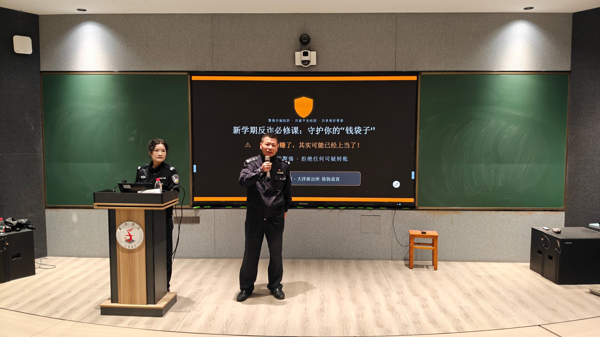 近日,由校安全保卫部组织的“相约星期三”平安微课系列活动之反诈与毒品预防讲座在临海校区开讲,大洋派出所法制宣讲员徐扬益应邀担任主讲。