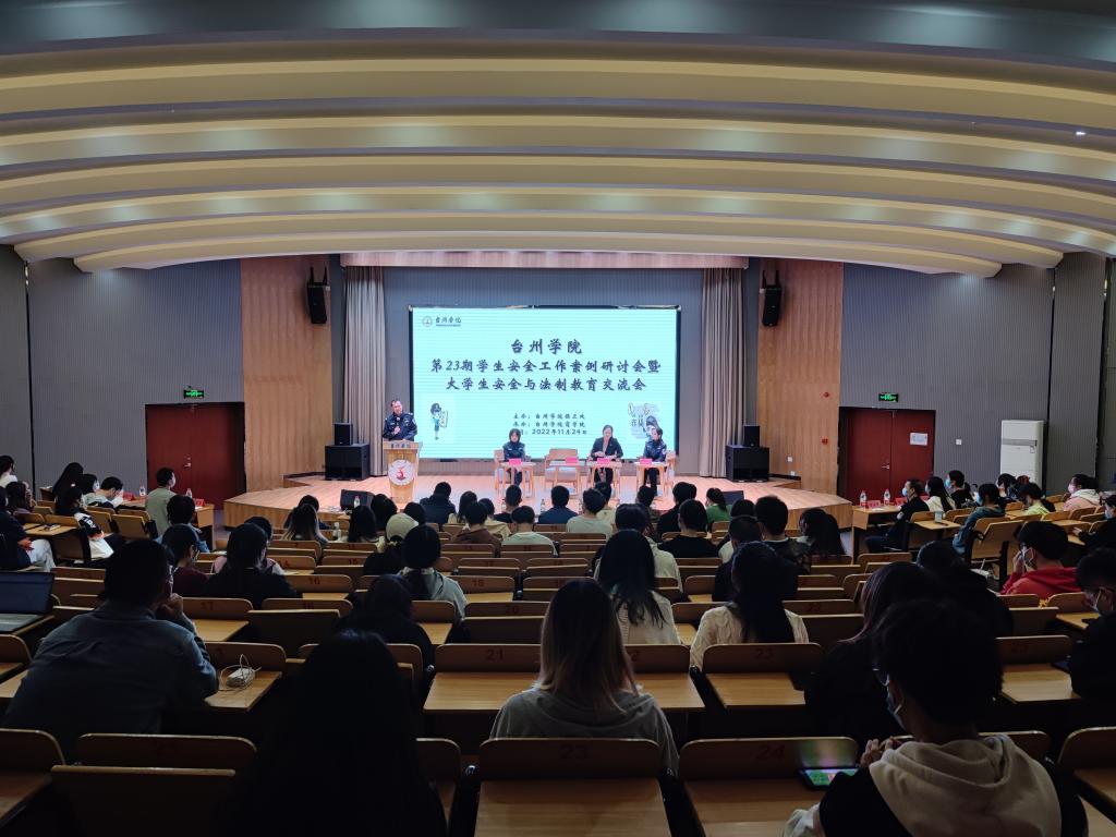 为进一步提高同学们的法纪观念和安全意识,做一个知法、懂法、守法、用法的大学生,11月24日下午,由台州学院保卫处主办、商学院承办的第23期学生安全工作案例研讨会暨大学生安全与法制教育交流会在3207活动室举行。台州市公安局椒江分局刑事侦查大队椒北中队中队长黄志伟、浙江之讼律师事务所主任律师奚陈虹、台州市公安局椒江分局葭沚派出所民警屈晨丹、台州市公共安全教育馆平安宣讲师黄婉秋等参加本次研讨会,校保卫处、商学院相关领导及各学院负责安全工作的辅导员出席会议。