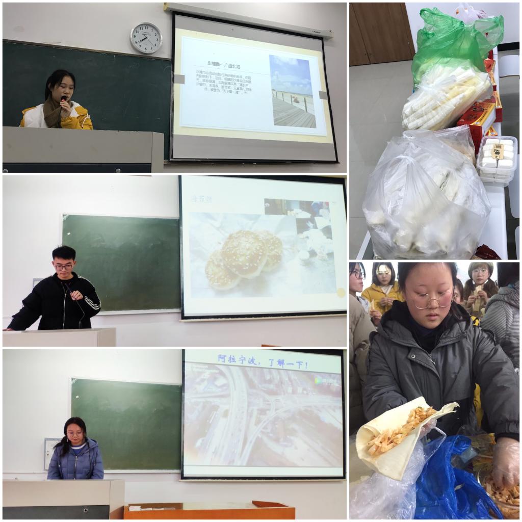 来自五十多个不同县市区的同学利用自己寒假期间精心制作的PPT和视频向在场的同学们介绍家乡的风土人情。浙江各地,陕西、贵州、四川、福建、黑龙江……各地秀丽的风景让人心驰神往,有趣的民俗令人大开眼界,美味的食物更是勾得大家垂涎三尺,恨不得立刻开吃。终于等到了最后一个环节——品尝家乡特产。各式各样的特产铺成一排,大家围聚在一起,开怀大吃,嬉笑打趣,宛若一家人。在一派其乐融融的景象中,本次活动圆满落幕。