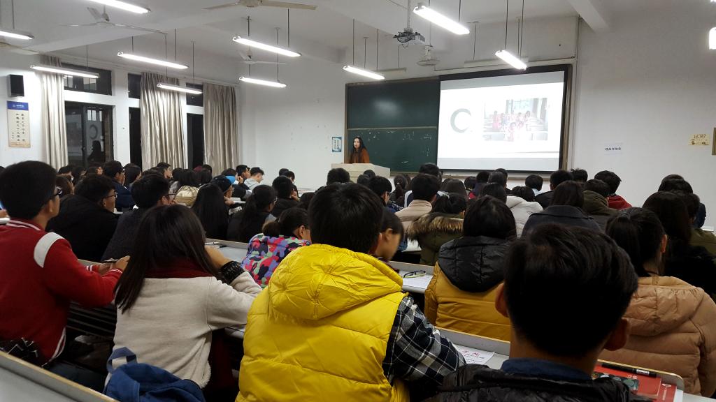 11月30日晚,“青年e学堂”第一期在椒江校区2-302教室拉开帷幕,保卫处邀请了“校十佳大学生”——潘宁宁与全体校卫队成员交流自己的四年大学生活。