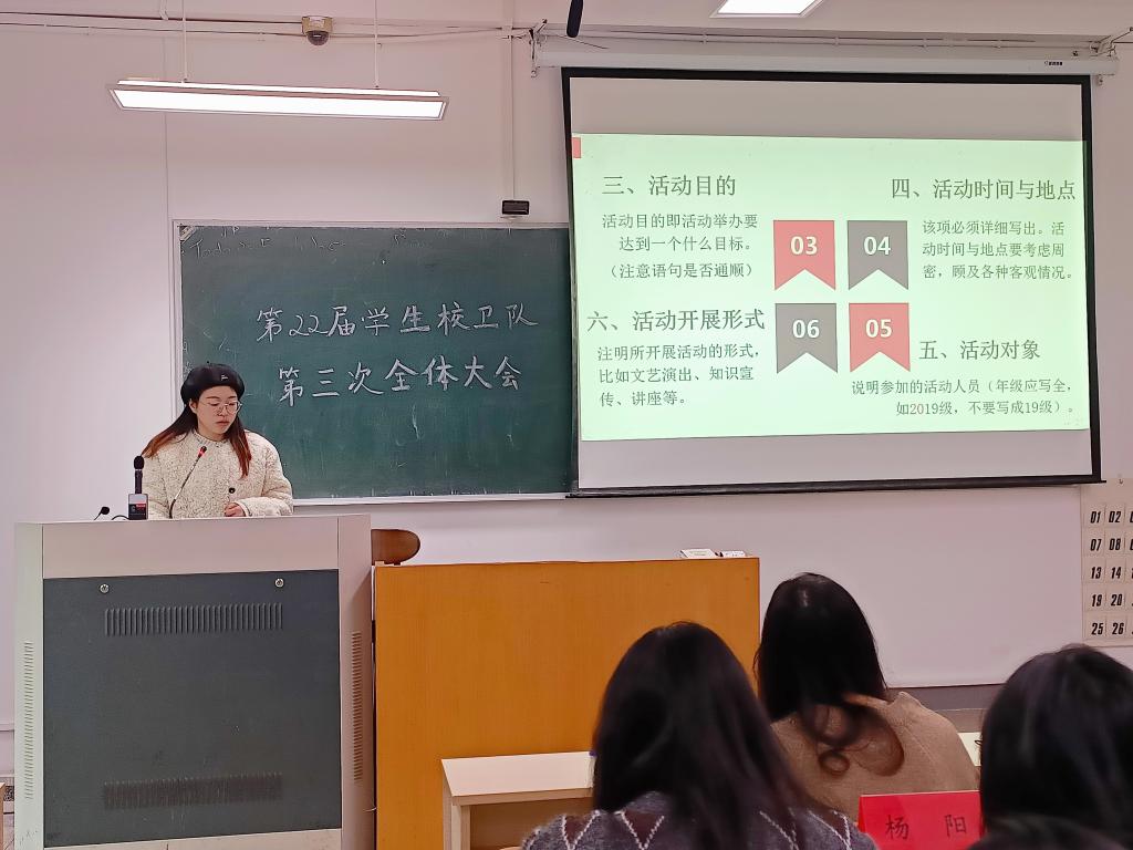 12月18、21日,一场旨在提高学生校卫队队员活动组织能力的培训会在椒江、临海两校区举行。该培训由校安全保卫部叶挺婷主讲,学生校卫队全体成员积极参与。