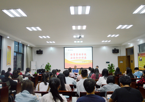 为提升学生金融风险防范意识,远离不良“校园贷”,4月26日晚,经贸管理学院在经管大楼303举办“平安台院”微课堂第72期——“校园贷”安全知识专题讲座。校保卫处副处长马斌老师主讲,年级辅导员,各班班长、安全信息员和团学骨干聆听讲座。学院党总支副书记潘垚主持讲座。