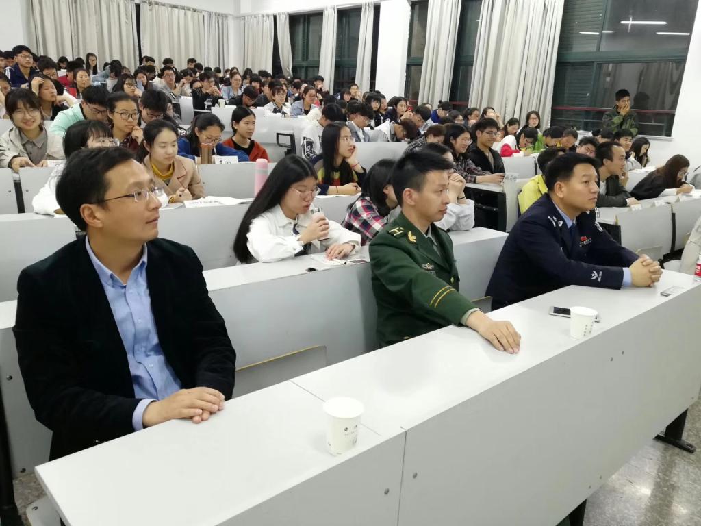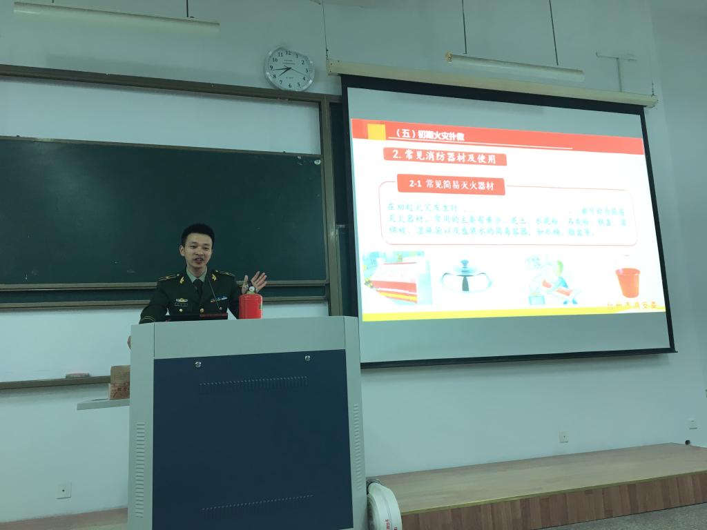 关警官从典型案例展开,围绕火灾的基本常识、消防器材与措施的使用、火灾逃生自救三个方面阐述。为使现场的学生更好的了解消防器材的使用,关警官现场演示灭火器与室内消火栓的使用方法,重点讲解了火灾的成因及初期火灾扑救措施。同时,他还用上海商学院与玉环市9.25事件的教训,告诫大家要掌握正确的逃生方法:勿往有浓烟楼梯间逃生,勿往更高层的楼层逃生,勿抬头挺胸的逃生,勿因钱财而回到火灾现场。