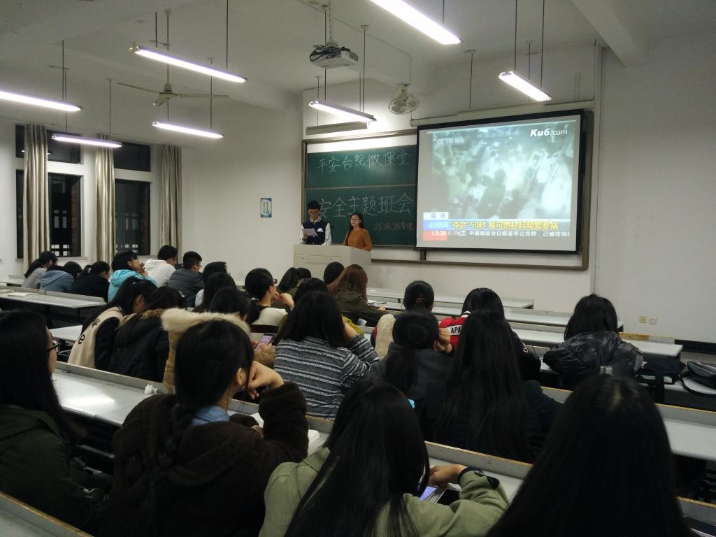 3月30日,“平安台院”微课堂第17期在椒江校区2-402教室举行。此次班会围绕“消防安全”、“网络安全”和“财产安全”三方面展开。
