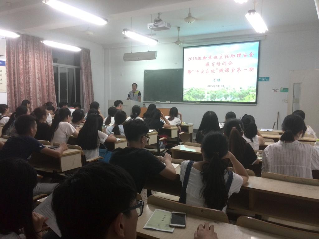 9月8日、9日,校保卫处分别在临海校区、椒江校区对2015级新生各班班主任助理开展安全教育专项培训,暨“平安台院”微课堂首期活动。