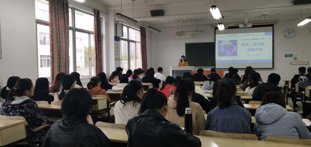 3月28日,“平安台院”微课堂第118期活动在临海校区1210教室举行。校保卫处叶挺婷老师为大一、大二百余名学生校卫队队员、安全信息员讲解防范“盗抢骗”安全知识。