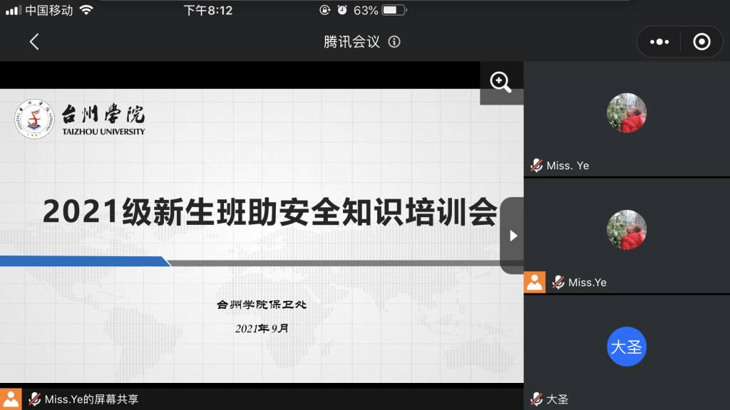 9月9日晚,保卫处叶挺婷老师在腾讯会议上组织召开了新生班助安全知识培训会,暨“平安台院”微课堂第132期活动。一百余名2021级新生班助参与了本次会议。