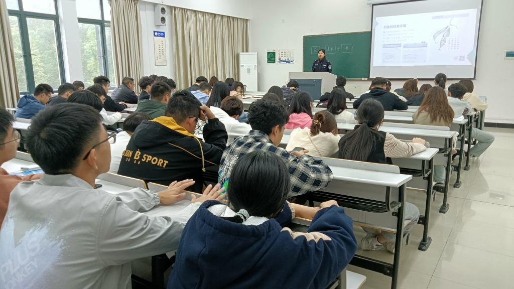 会上,章警官引用真实的案例,生动直观的防诈骗视频,吸引了同学们的注意,也通过简洁明了的四个字“人”“通讯”“钱”向在座的每个人说明了电信诈骗的过程,多角度、多层次地为同学们敲响了警钟。叶老师则结合PPT为大家详细讲解了安全信息员的职责、定位、工作要求、福利待遇等内容,让大家对安全信息员工作有更加清晰的认识。学生校卫队信息联络部也在部长的带领下进行了简单的自我介绍,并向各位安全信息员阐述了具体考核制度。会议结束,安全信息员各领得一本《电信网络诈骗防范指南》,要求将其中内容以多种形式告知班级同学,防止大家上当受骗。