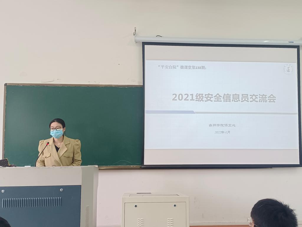 4月17日、22日,2021级安全信息员会议在临海、椒江两校区顺利召开。本次会议由保卫处叶挺婷老师主持,全体安全信息员参加。