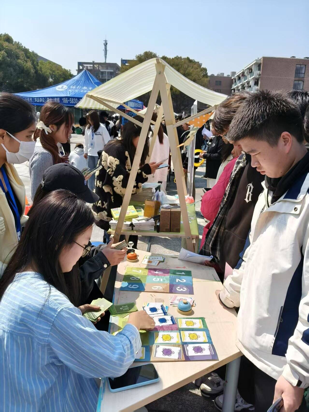 活动现场设置了情绪细胞采集站、情绪代谢调节站和医路心光能量站三个特色区域,吸引众多同学踊跃参与。在“情绪细胞采集站”,套圈游戏趣味十足。同学们全神贯注,奋力投出手中的套圈,套中即可获得可爱的乌龟情绪卡牌。若套中代表负面情绪的立柱,则前往“情绪代谢调节站”,通过回答相关问题学习调节情绪的方法,从而赢取更多卡牌。这一环节巧妙地将知识融入游戏,激发了同学们对情绪管理的思考。