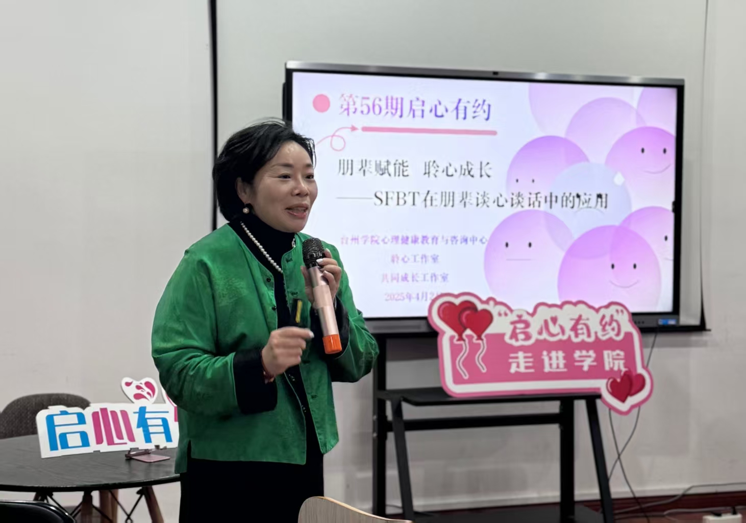 为提升心理委员专业能力,全面推进平安校园建设,4月2日晚,第56期启心有约:朋辈赋能•聆心成长——SFBT话术走进心理委员讲座在学生活动中心团体辅导室202顺利举行。此次讲座由金彩云老师主持,辅导员徐薇、朱佳婧老师及学院24级部分学生参与。